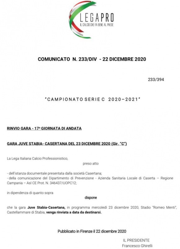 Pubblichiamo nota stampa della Lega Pro