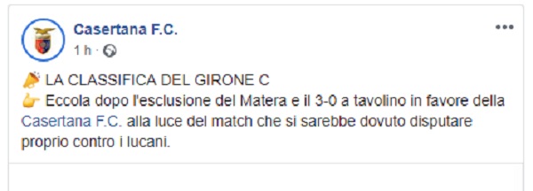 Questo il post pubblicato sulla pagina fb ufficiale della Casertana F.C.