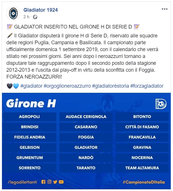 Questo quanto pubblicato dal Gladiator sul proprio profilo FB