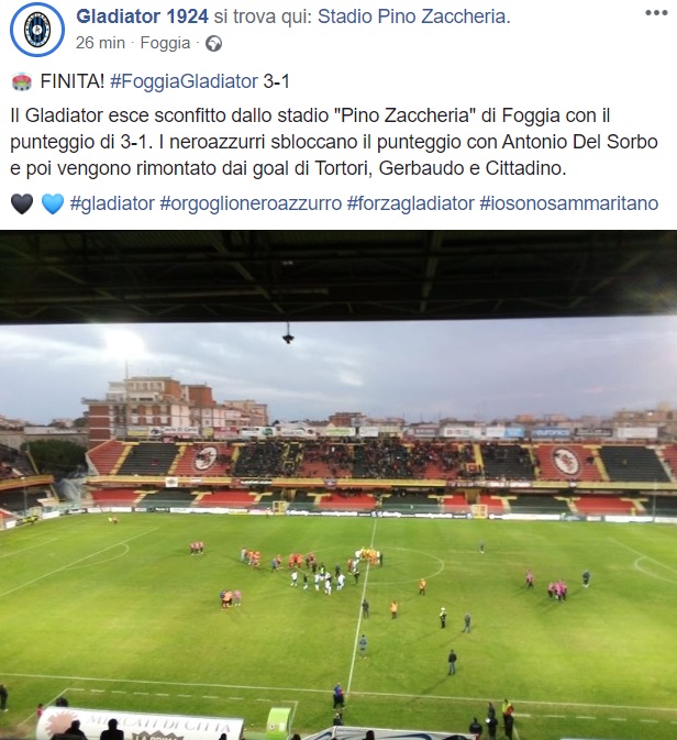 Questo quanto pubblicato sulla pagina Facebook del Gladiator 1924: