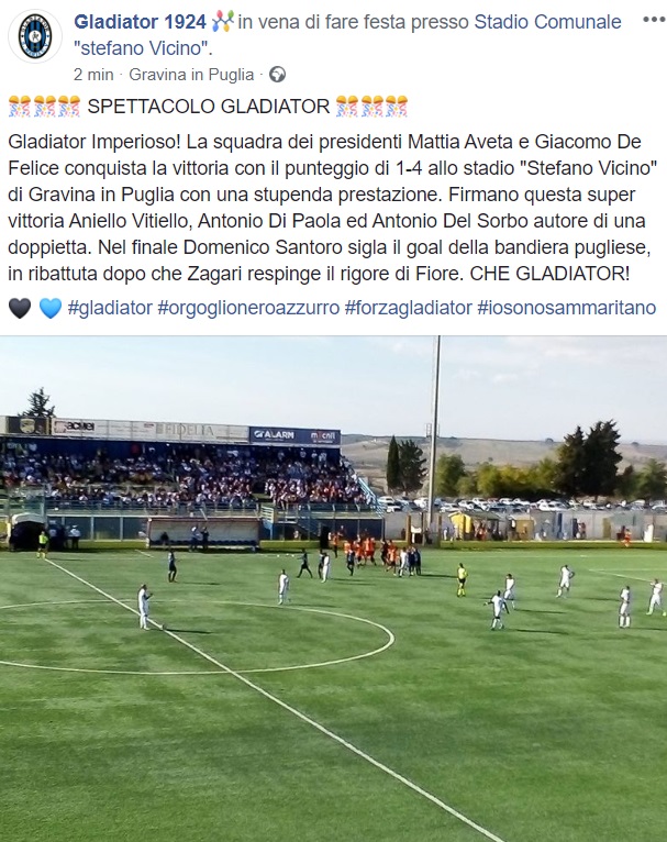 Questo quanto pubblicato sulla pagina Facebook del Gladiator 1924: