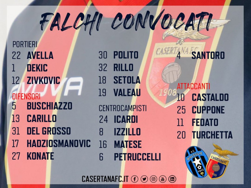 Vigilia di Bisceglie-Casertana. Ecco i convocati di mister Guidi: