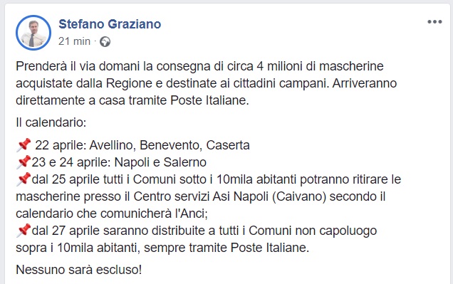 Questo quanto comunicato dall'On. Graziano