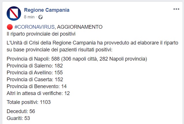 Questo quanto pubblicato dalla Regione Campania