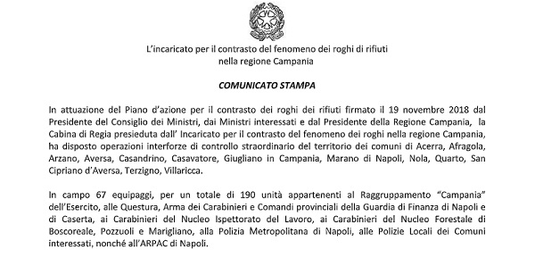 Questo parte del comunicato inviatoci dall'Ufficio Stampa della Prefettura di Napolil