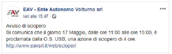 Questo il post pubblicato sulla pagina fb ufficiale dell'EAV.