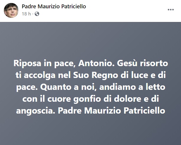Questo quanto apprendiamo dalla pagina facebook di Padre Maurizio Patriciello: