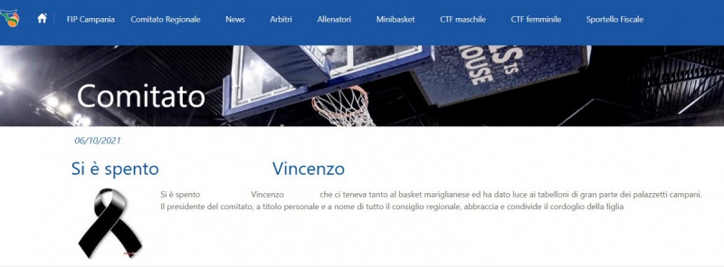 "Si è spento ... Vincenzo ... che ci teneva tanto al basket mariglianese ed ha dato luce ai tabelloni di gran parte dei palazzetti campani. Il presidente del comitato, a titolo personale e a nome di tutto il consiglio regionale, abbraccia e condivide il cordoglio della figlia ..."