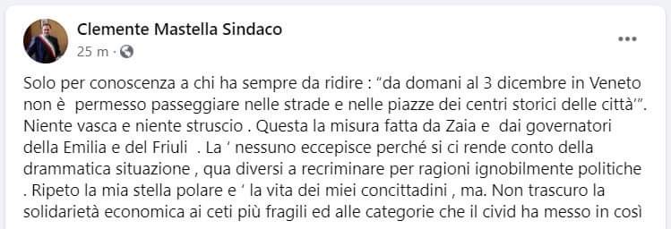 Questo quanto pubblicato sulla pagina Facebook del sindaco Mastella