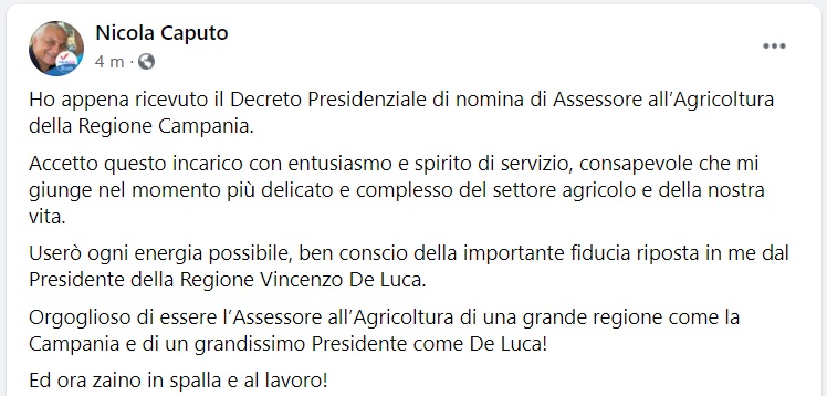 Questo quanto pubblicato sulla pagina fb dell'On.le Caputo