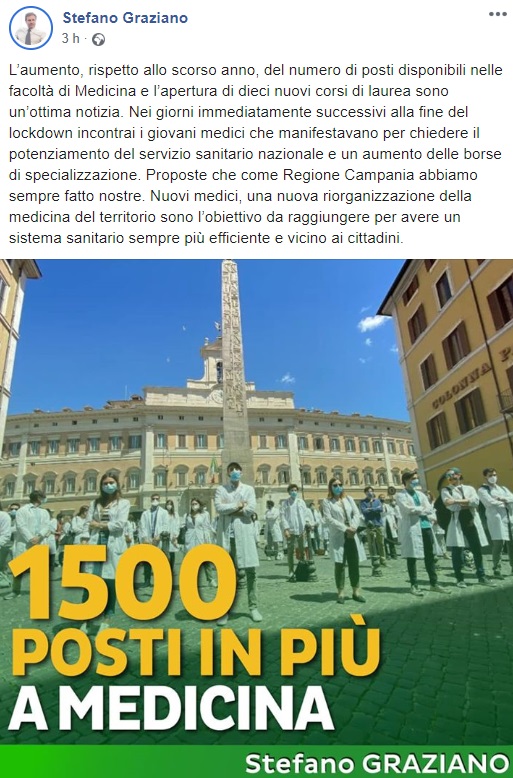 Questo quanto apprendiamo dalla pagina facebook dell'On. Graziano:
