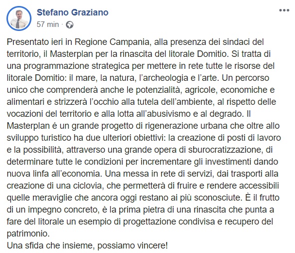 Questo quanto pubblicato sulla pagina facebook dell'On. Graziano:
