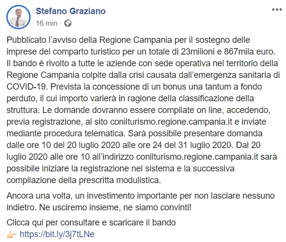 Questo quanto apprendiamo dalla pagina facebook dell'On. Graziano: