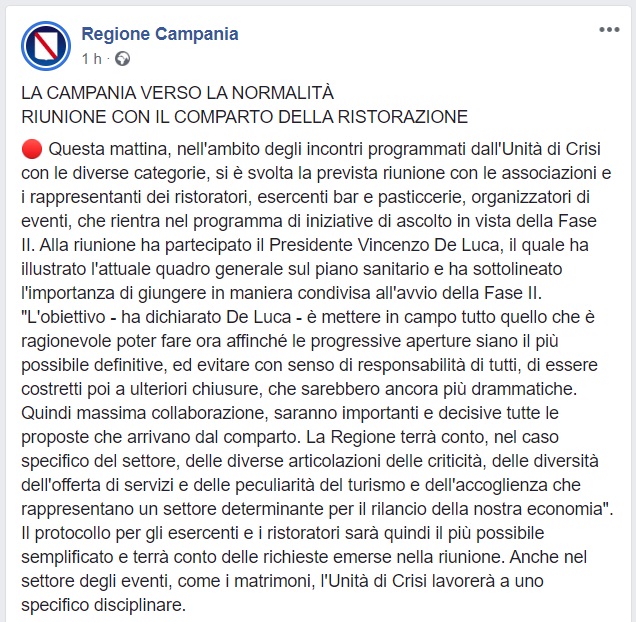 Questo quanto pubblicato dalla Regione Campania