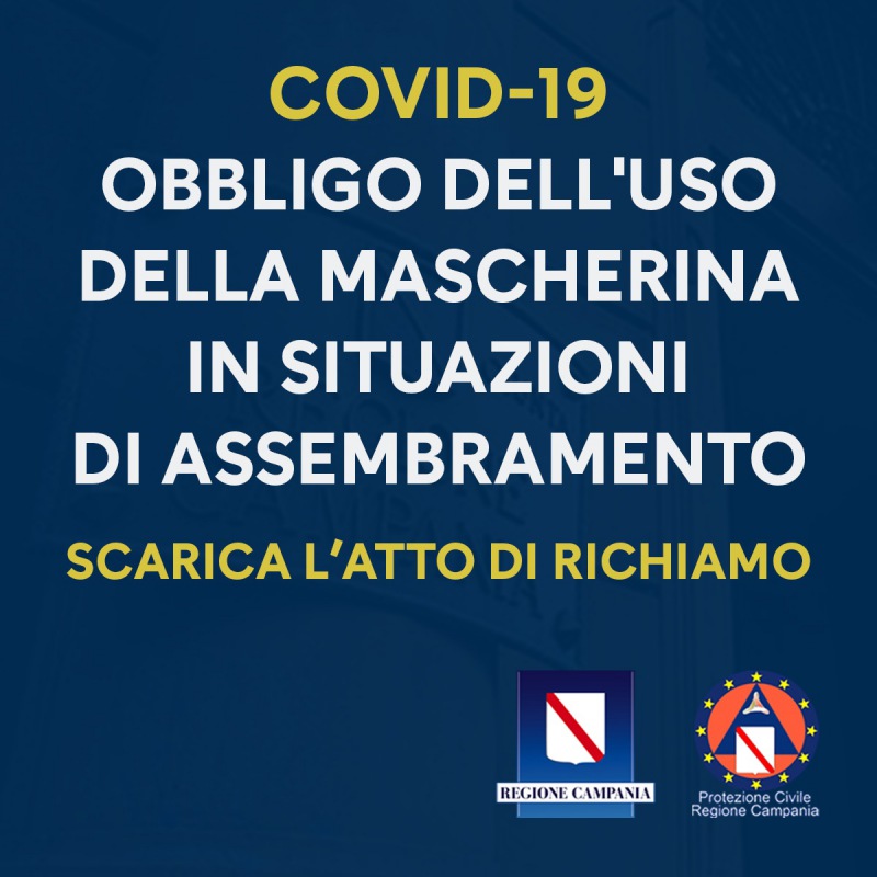 Si ricorda che permane l'obbligo di utilizzo dei dispositivi di protezione delle vie respiratorie, anche all'aperto, in presenza di affollamenti e assembramenti fino alla conclusione dello stato di emergenza, obbligo disposto dall’Ordinanza del Ministro della Salute dell'8 febbraio 2022, previsto- si legge nella nota- anche per le regioni in "zona bianca". "Si raccomanda in modo particolare - dichiara il Presidente Vincenzo De Luca - di rispettare tale obbligo in occasione del Carnevale e di eventi pubblici e privati che possano determinare pericolo di nuovi contagi. Il senso di responsabilità e la prudenza consentiranno- si legge nella nota- una maggiore tutela dei nostri concittadini e il rientro sereno nella vita normale, anche per le attività economiche". Scarica l’Atto di Richiamo https://bit.ly/3HA6M8E"
