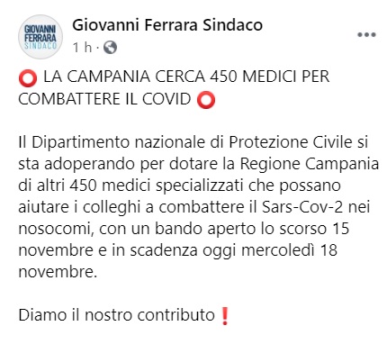 Questo quanto pubblicato sulla pagina fb del Sindaco di S.Felice a C.