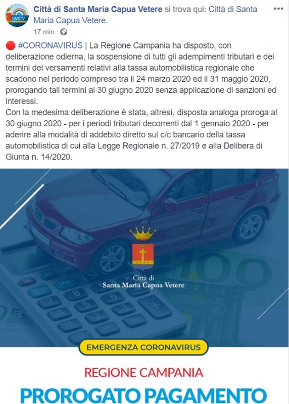 Lo apprendiamo dalla pagina facebook del Comune di SMCV: