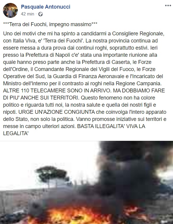 Questo quanto apprendiamo dalla pagina facebook del candidato alle Regionali Antonucci: