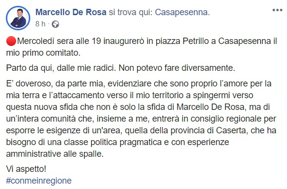 Questo quanto pubblicato sulla pagina facebook del Sindaco De Rosa: