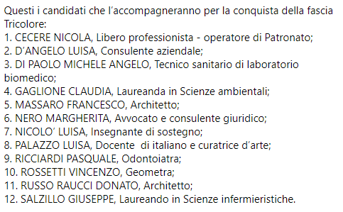 Un Sindaco che non segue è destinato a fallire. Ciò può avvenire - prosegue il comunicato - solo attraverso una squadra di uomini e donne competente, concreta, omogenea, coesa e rinnovata sugli obiettivi da perseguire e sulle modalità per raggiungerli.