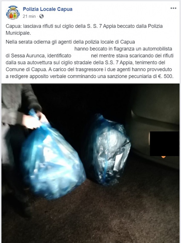 Questo quanto abbiamo appreso dalla pagina FB del Comando Polizia locale di Capua