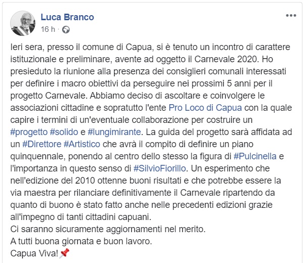 Questo quanto comunicato dal Sindaco di Capua Luca Branco