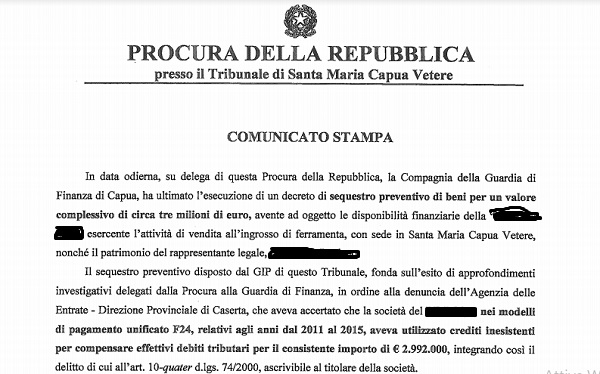 Questo parte del comunicato inviatoci dalla Procura della Repubblica presso il Tribunale di Santa Maria Capua Vetere.