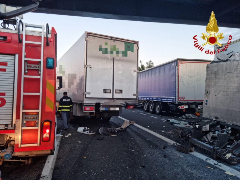 Questo il comunicato stampa diffuso dai Vigili del Fuoco: "Questa mattina verso le ore 06:00 due squadre di Vigili del Fuoco del Comando provinciale di Caserta e precisamente una proveniente dalla sede Centrale del Comando e una proveniente dal distaccamento di Teano sono intervenute sull'autostrada A1 al Km 718+700, poco dopo il casello di Capua - si legge nel comunicato - per un incidente stradale. Giunti sul posto i Vigili del Fuoco hanno trovato cinque autotreni incidentati tra di loro con gli occupanti di tre mezzi pesanti incastrati tra le lamiere. Immediatamente si interveniva per estrarre dalle lamiere i conducenti con l'attrezzatura da taglio in dotazione. Dopo un elaborato lavoro - si legge ancora - reso difficile anche dalle condizioni in cui erano i mezzi, i Vigili del Fuoco sono riusciti ad estrarre dalle lamiere tutti gli occupanti, assicurandoli alle cure dei sanitari presenti sul posto con varie ambulanze per il successivo trasporto in ospedale. Chiusa l'arteria autostradale per permettere le operazioni di soccorso e rimozione dei veicoli".