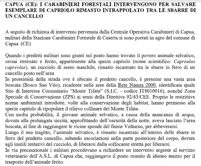 Pubblichiamo nota stampa Comando Provinciale Carabinieri di Caserta