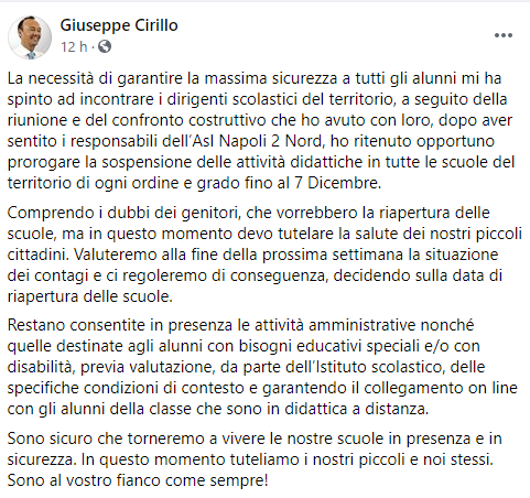 Dalla pagina Facebook del Sindaco di Cardito Cirillo