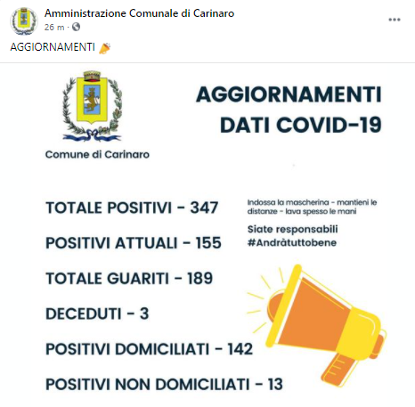 Dalla pagina Facebook del Comune di Carinaro