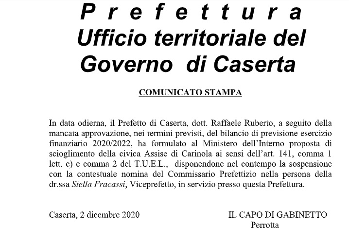 Questa la nota stampa della Prefettura di Caserta: