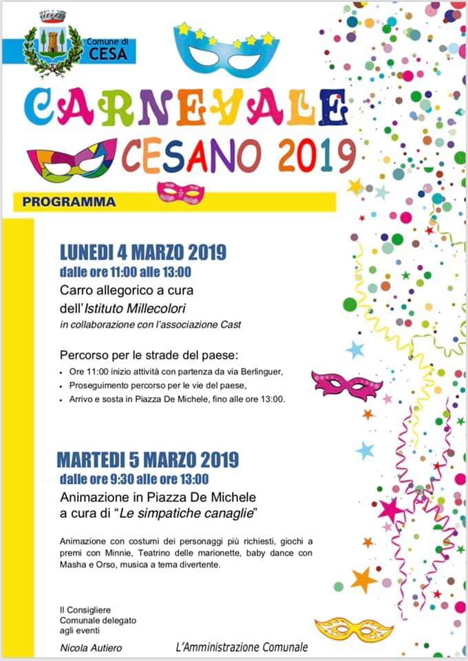 "Carnevale Cesano. Il programma di lunedì 4 e martedì 5 marzo."