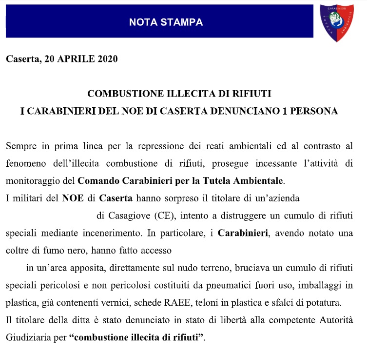 Pubblichiamo nota stampa del Comando Provinciale Carabinieri di Caserta