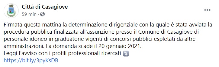 Questo quanto apprendiamo dalla pagina facebook del Comune di Casagiove: