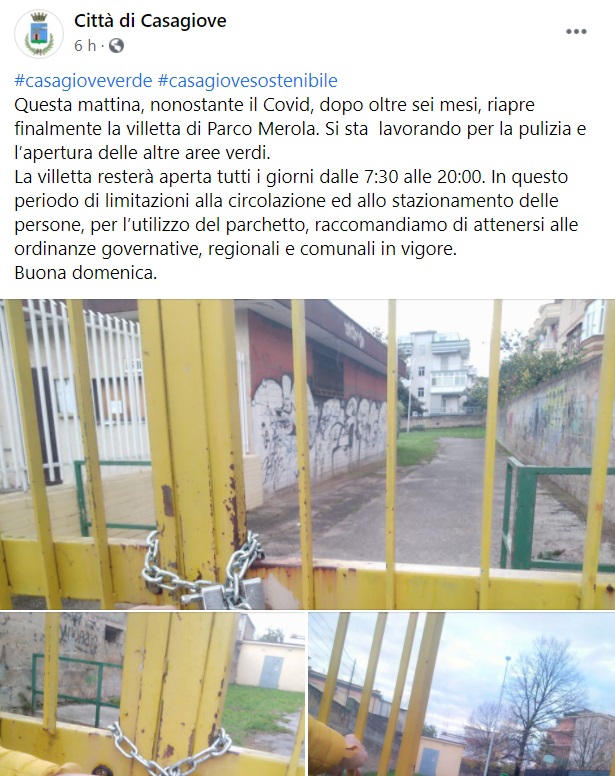Questo quanto apprendiamo dalla pagina facebook del Comune di Casagiove: