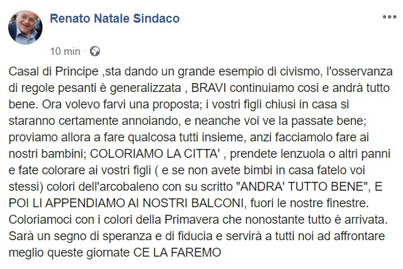 Questo quanto pubblicato sulla pagina facebook del Sindaco Natale: