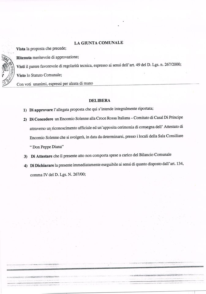 "Doveroso riconoscimento verso chi con il proprio impegno rende onore alla nostra Città.Grazie ai volontari tutti della Croce Rossa."