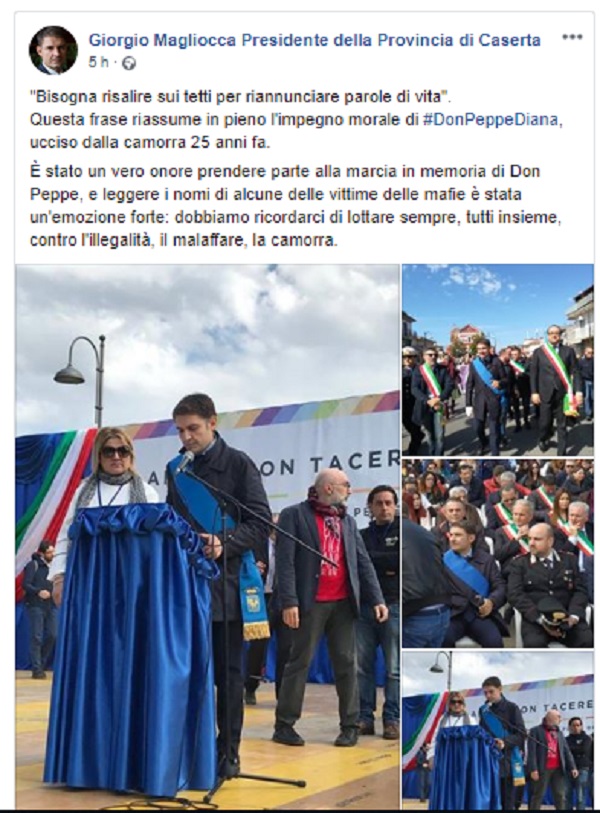 Questo il post pubblicato sulla pagina fb ufficiale del Presidente della Provincia di Caserta Giorgio Magliocca.