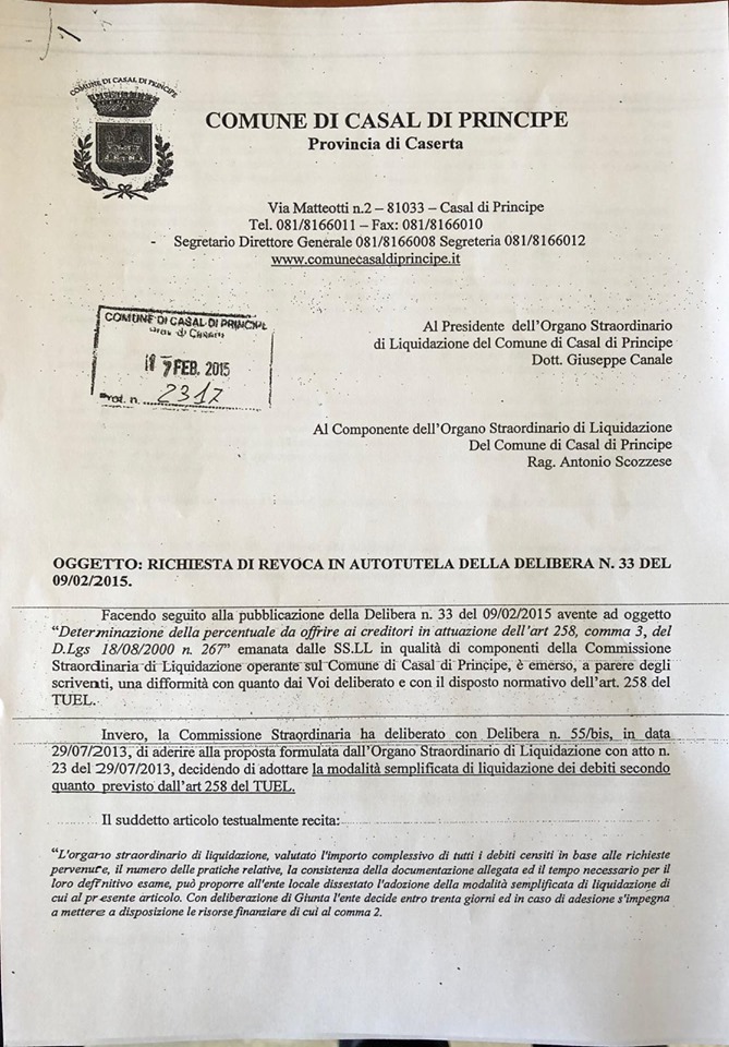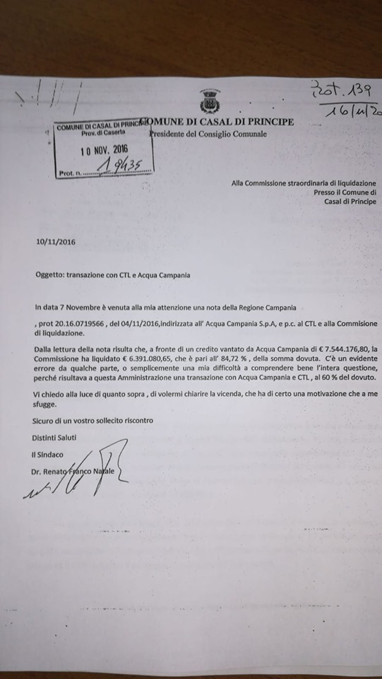 Lo apprendiamo dalla pagina Facebook del Sindaco di Casal di Principe, Renato Natale: