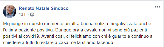 Questo il post pubblicato sulla pagina Facebook del Sindaco di Casal di Principe Renato Natale: