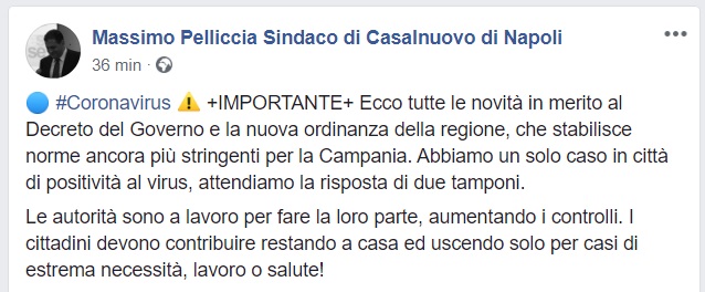 Questo quanto comunicato dal Sindaco di Casalnuovo