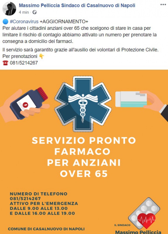 Questo quanto apprendiamo dalla pagina facebook del Sindaco Pelliccia: