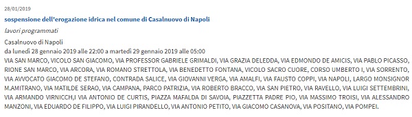 PUBBLICHIAMO L'AVVISO DELLA SOCIETA' CHE SI OCCUPA DELL'EROGAZIONE IDRICA: