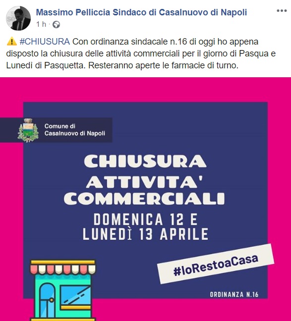 Questo quanto apprendiamo dalla pagina facebook del Sindaco Pelliccia: