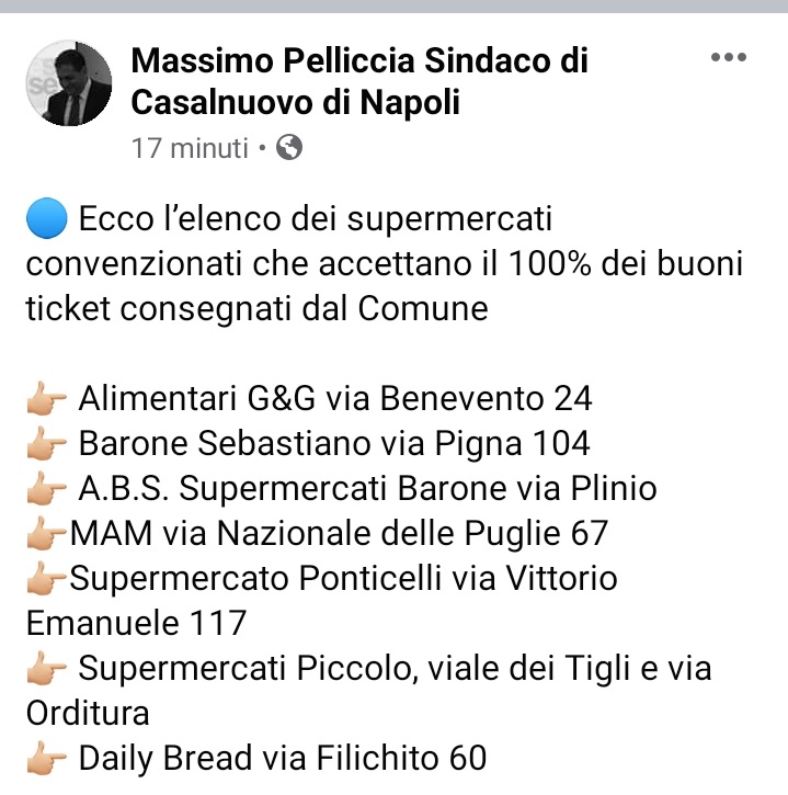 Casalnuovo. L'elenco dei supermercati convenzionati che accettano i buoni spesa