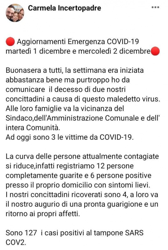Questo quanto pubblicato sulla pagina fb del Vice Sindaco di Casaluce