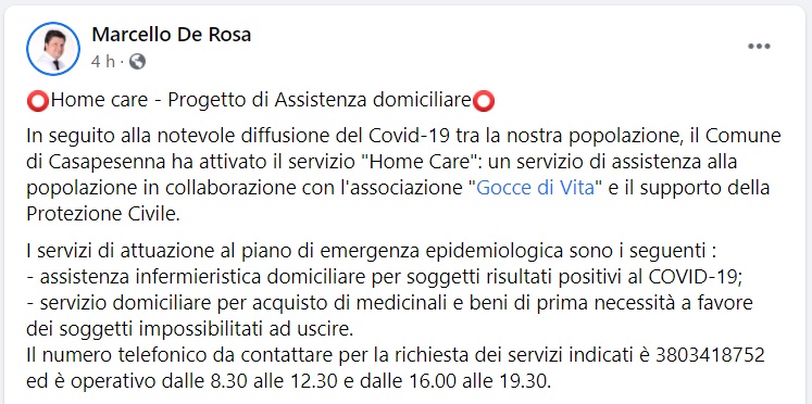 Questo quanto pubblicato sulla pagina fb del Sindaco di Casapesenna