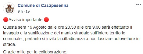 Questo quanto apprendiamo dalla pagina facebook del Comune di Casapesenna: