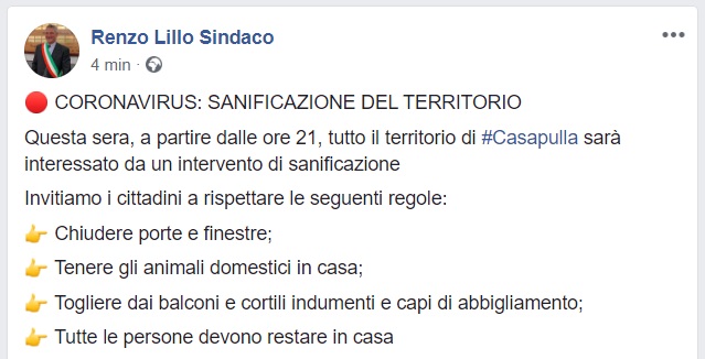 Questo quanto apprendiamo dal profilo FB del Sindaco Lillo